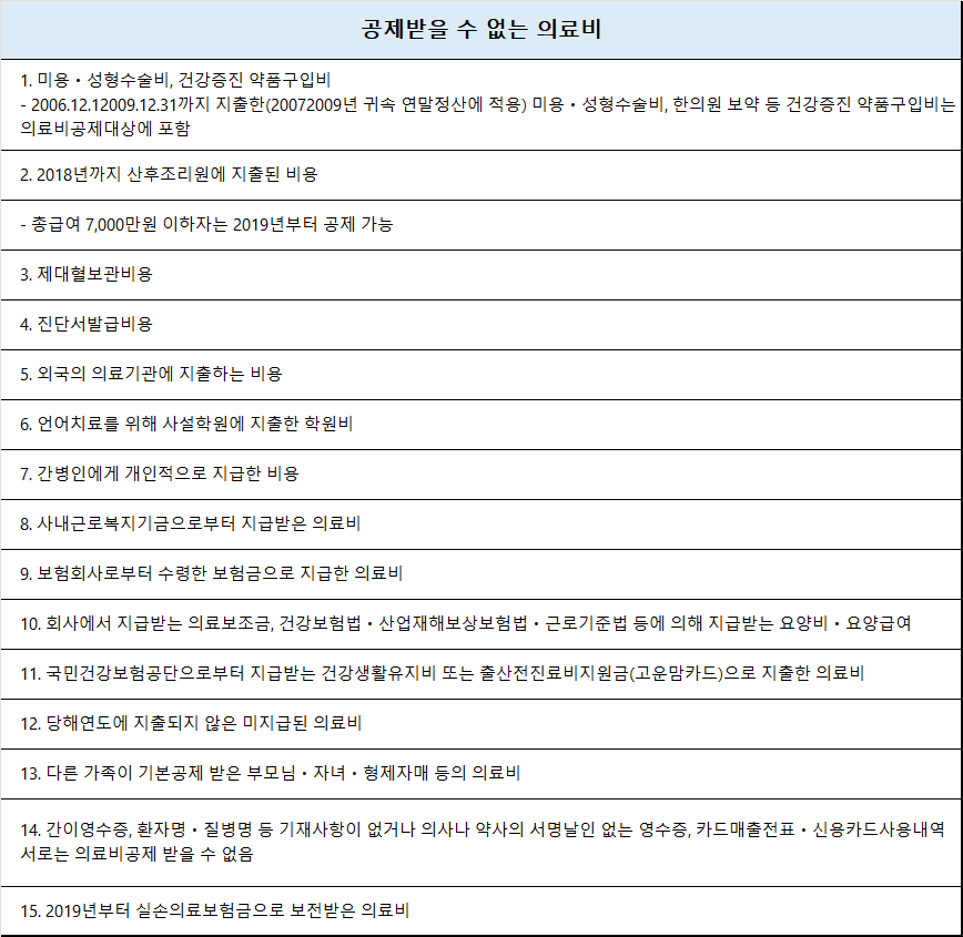 - 제대혈 보관비용, 진단서 발급비용: 이들 비용도 공제 대상이 아닙니다.