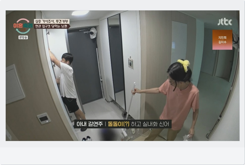 아내 길연주 씨는 집안 청소에 대한 강박적인 집착을 보이며, 남편이 집안으로 들어올 때마다 '돌돌이'를 사용해 먼지를 제거하도록 요구합니다. 또한, 아내는 남편의 위치를 추적하는 어플을 사용해 남편의 일거수일투족을 감시하며, 이는 남편에게 큰 스트레스를 주고 있습니다. 이러한 행동들은 아내의 불안과 남편에 대한 불신에서 비롯된 것으로 보이며, 부부 관계를 더욱 악화시키고 있습니다.