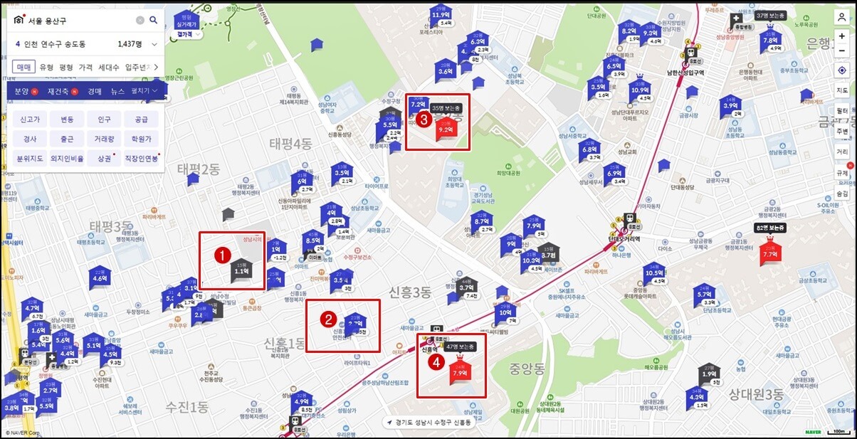 - 빨간색에 왕관(④): “지역 내 가장 인기 있는 아파트”